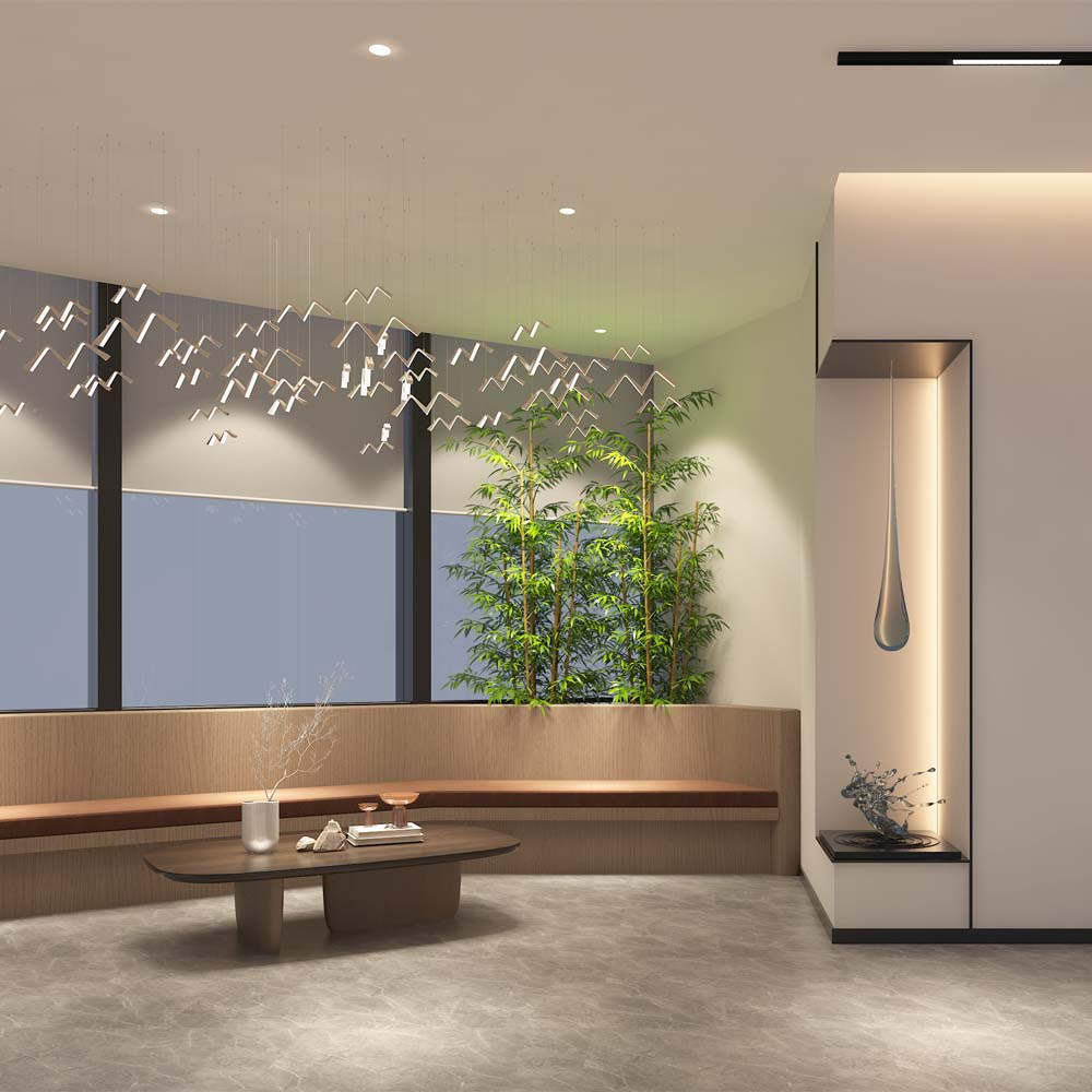 本次富雅國際辦公會所設計裝修案例中,客戶的主要訴求是“多元化的辦公商務需求”,在經(jīng)過多次實地測量考察與溝通后,結合現(xiàn)場扇形場地限制,“吃喝玩樂一條龍服務”成為本次項目設計理念之一。